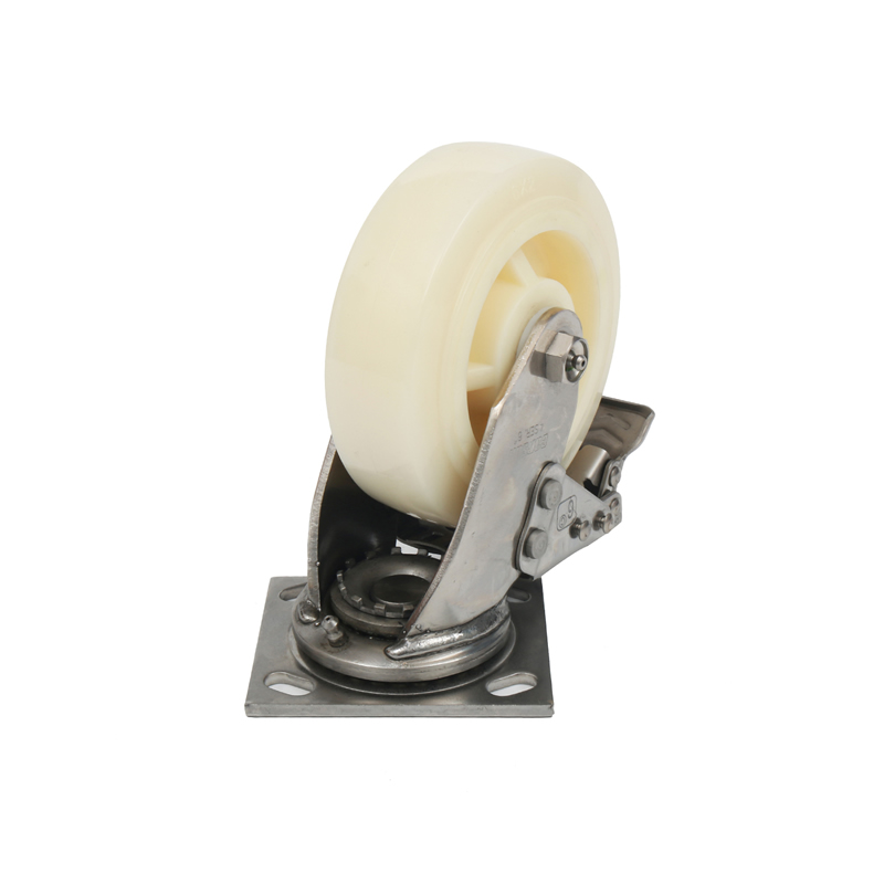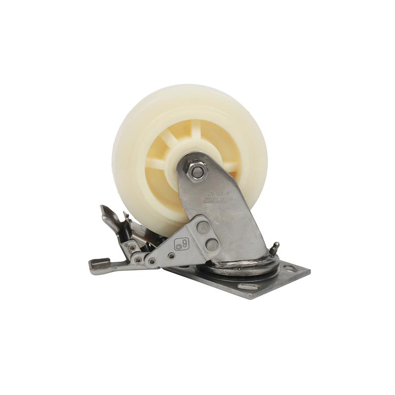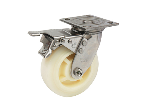4系列万向轮带不锈钢全刹6英寸白玉尼龙脚轮